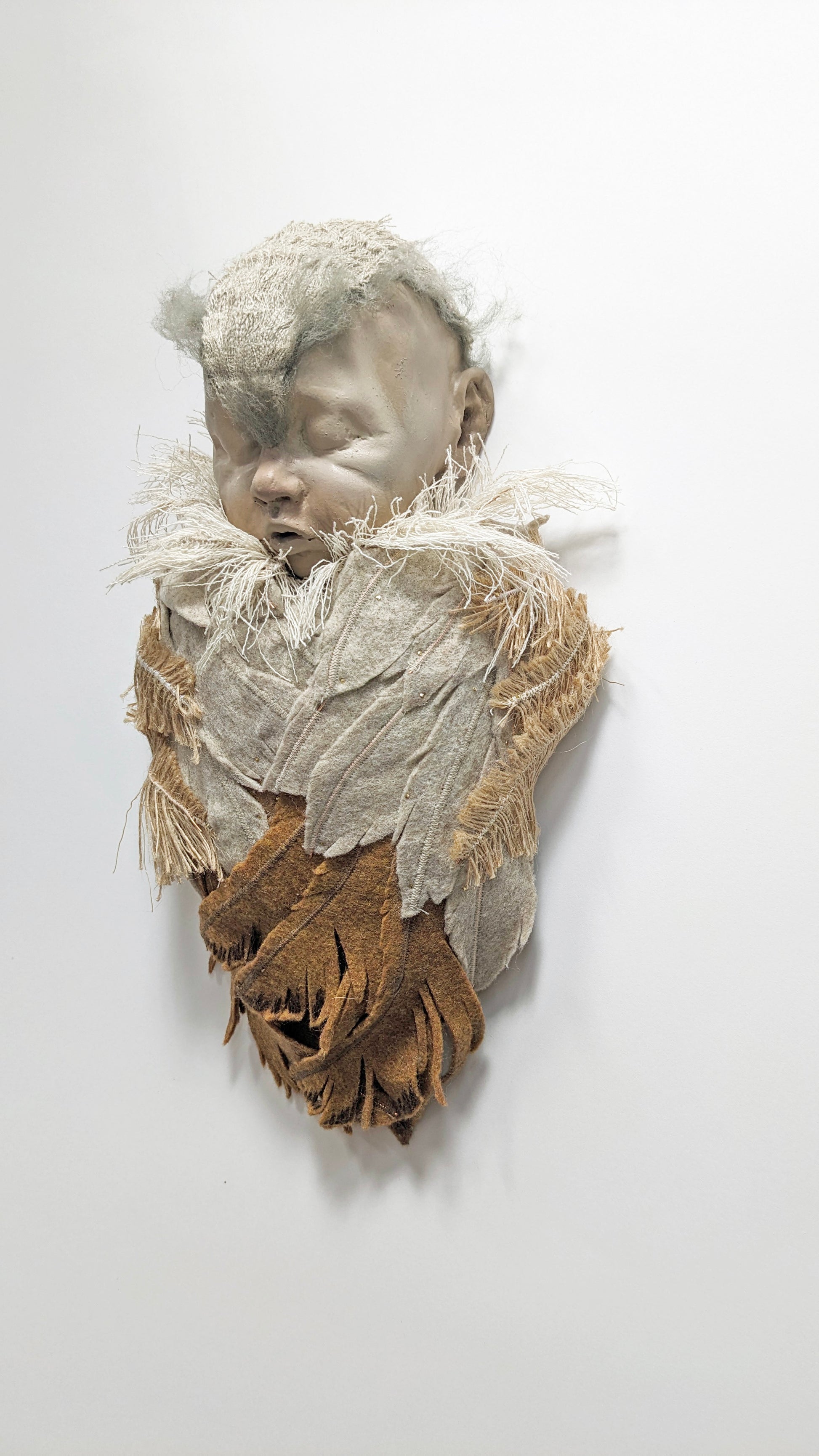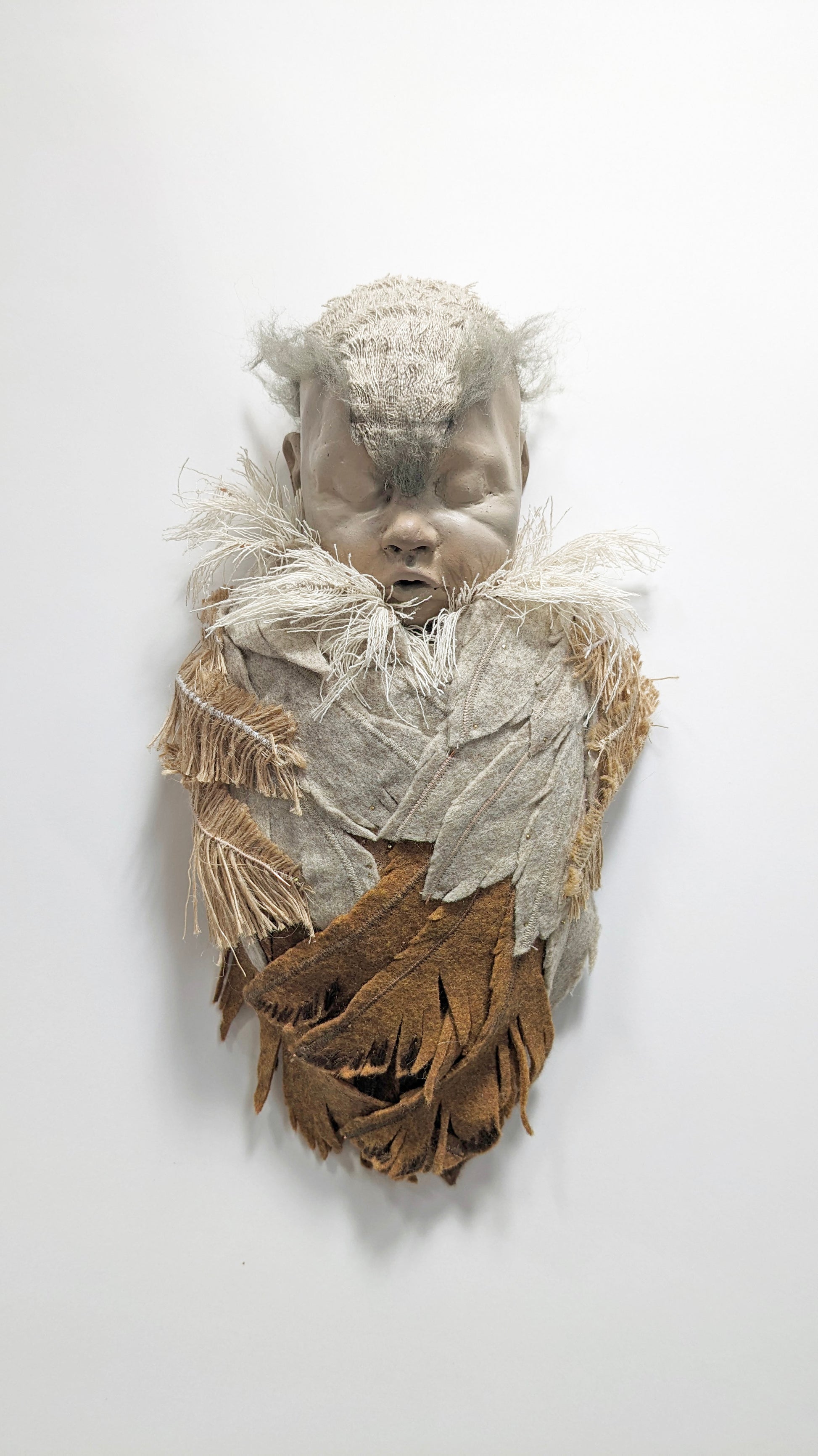 modeled clay cast in resin, felt, ribbon; hand-painted